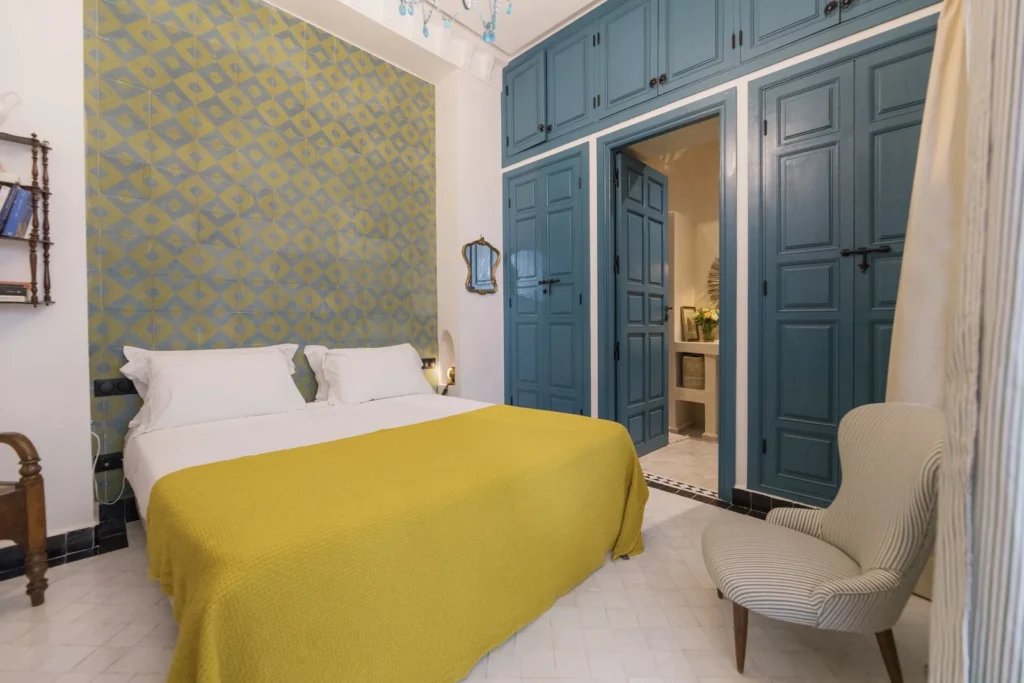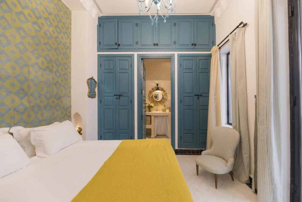 Located in the peaceful first patio of the riad, this elegant 20 m² room offers the same serene atmosphere as our Superior category, with the comfort of a queen-size double bed. Designed for couples seeking intimacy and style, it blends charm, comfort, and tranquility.